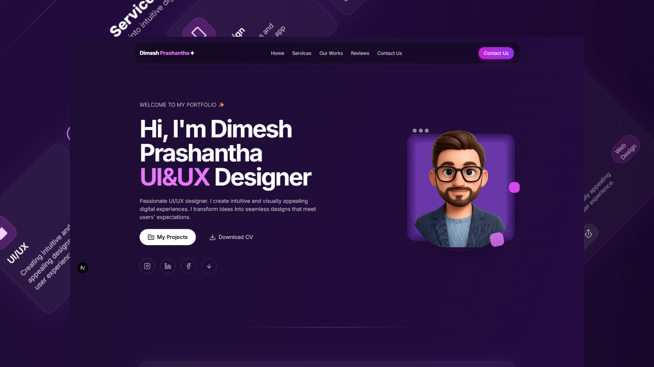 I'm Dimesh Prashantha, a passionate UI/UX designer dedicated to creating seamless and visually engaging digital experiences. With experience, I specialize in designing intuitive interfaces that enhance usability and user satisfaction.